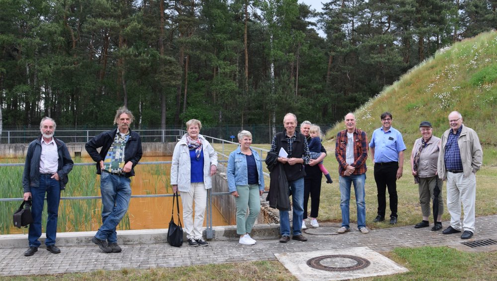 Um sich über die regionale Wasserversorgung zu informieren, besichtigten die Artland-Grünen zusammen mit der Landtagskandidatin des hiesigen Wahlkreises, Sandra Weigand aus Ankum (4.v.li.), das Wasserwerk Ohrte. Dort erläuterte Ralph-Erik Schaffert, Geschäftsführer des Wasserverbandes Bersenbrück gemeinsam mit seinem Mitarbeiter Peter Hömmen zunächst dessen Funktionsweise. Es können aus 6 Brunnen pro Stunde 500 m³ Rohwasser aufbereitet werden. Obwohl das natürliche Rohwasser aus den Brunnen bereits trinkbar sei, enthalte es Eisen, Kohlensäure, und Mangan. Diese Stoffe würden im Leitungsnetz zu schnellem Verschleiß führen. Daher durchlaufe das Rohwasser mehrstufige Aufbereitungsanlagen. Im Vorfilter wird durch Kiesfilter das Eisen entfernt und im Rieseler blasen Ventilatoren einen Großteil der Kohlensäure aus dem Rohwasser. Im Nachfilter wird durch Oxidation und feinen Calciumcarbonat-Kies schließlich Mangan herausgefiltert und die restliche Kohlensäure abgebunden.